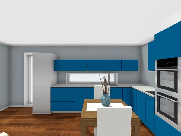 18mm Melamine kitchen carcasses, base & 900mm tall wall units, soft close s/s hinges. matching plinth. worktop 40mm post form laminate to selected finish, Foil wrapped flush doors.