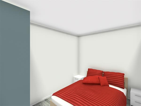 Reveal mounted manual fabric roller blackout blinds to bedroom areas